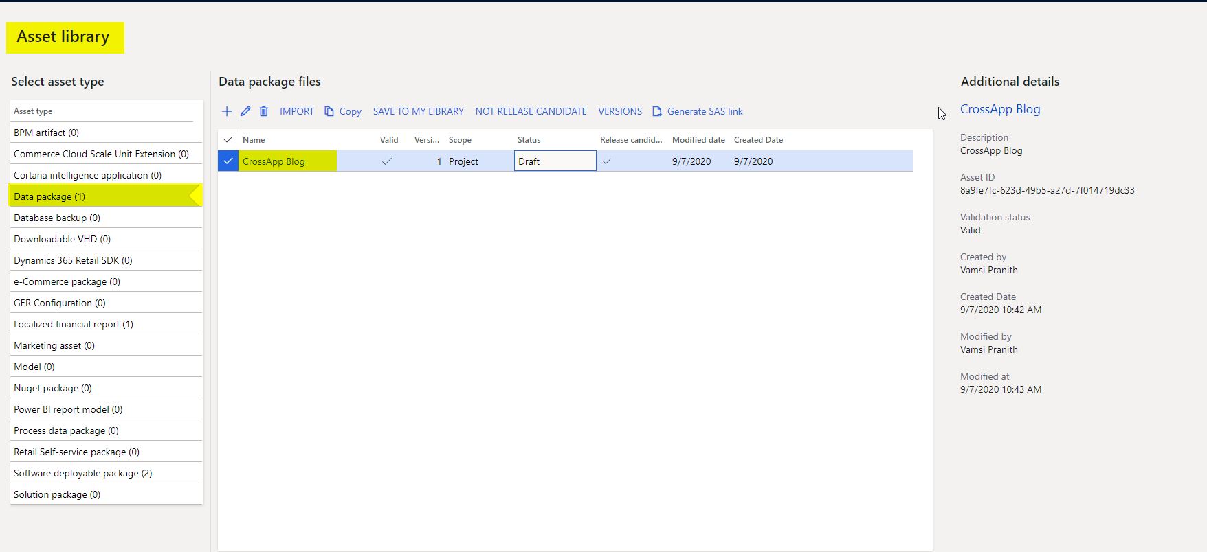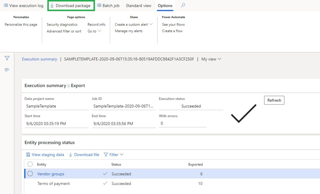 I have a package that has Vendor group and Payment terms as data entities in it and this is loaded into LCS project’s asset library.