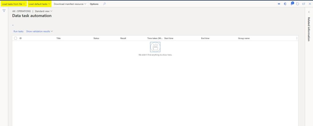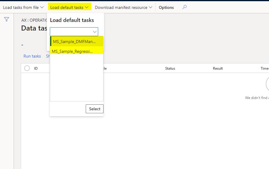 2. Load default tasks: This is where utilizing data task automation along with a defined ALM strategy would come into play. Customers and Partners who understand the importance of having a configuration and data migration controlled. These tasks/manifests in which the tasks are embedded, are maintained as “Resources” under AOT. So once you have a manifest ready, all you need to do is have the manifest checked in as a resource by a developer into the Resources and the next time you see your manifest being available here.